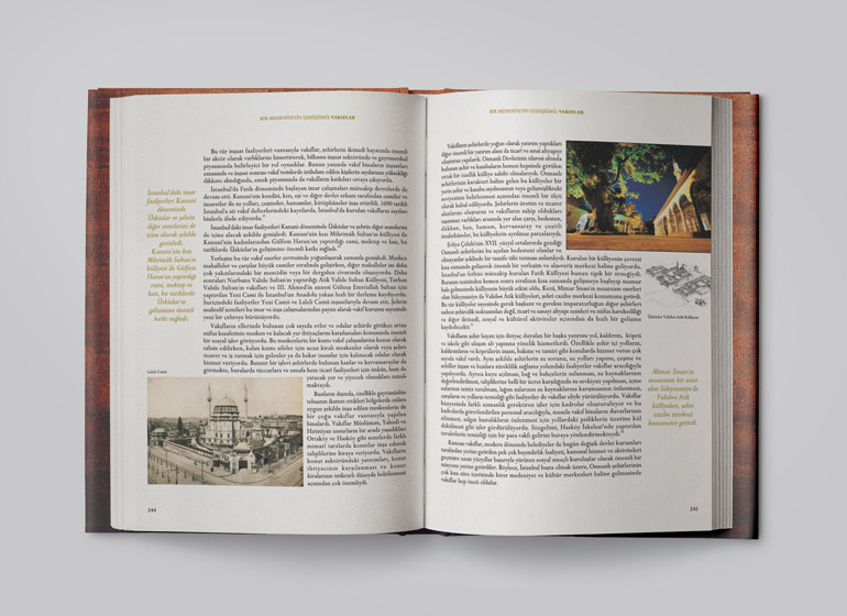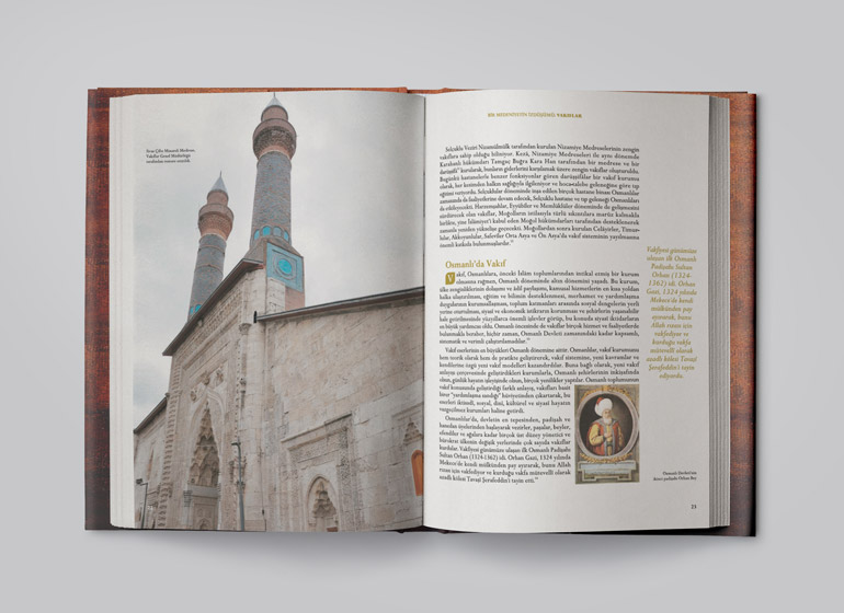 “Bir Medeniyetin İzdüşümü: Vakıflar” eseriyle bir yandan zengin vakıf medeniyetimiz ve kültürümüzün genel bir değerlendirmesi yapılmış ve vakıf sisteminin okuyuculara ve özellikle genç nesillere doğru şekilde tanıtılması amaçlanmıştır. Prof. Dr. Ufuk Gülsoy’un nezaretinde akademik bir kadro tarafından hazırlanan eser, hem tasarımı hem de basımıyla da göz dolduruyor.