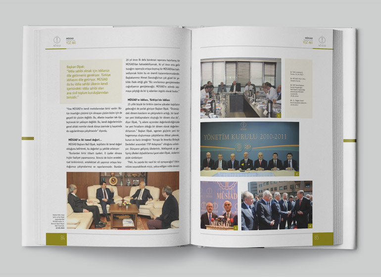 “MÜSİAD Türkiye’nin Yüz Akı” kitabı derneğin geride bırakılan 25 yıllık tarihine ışık tutuyor. Prof. Dr. Yaşar Bülbül başkanlığındaki araştırma ekibinin “literatür ve basın taramaları, kapsamlı söyleşileri” gibi unsurlarla da zenginleştirilen kitapta, 12 kişiyle yola çıkan bir iş örgütünün Türkiye’nin geleceğine yön veren kurumlar arasında almasının hikayesi de yer alıyor. Kitapta, Dr. Şefik Memiş, araştırmacı-yazar İsmail Şen ve Adem Dönmez tarafından hazırlanmış bölümler de bulunuyor.
